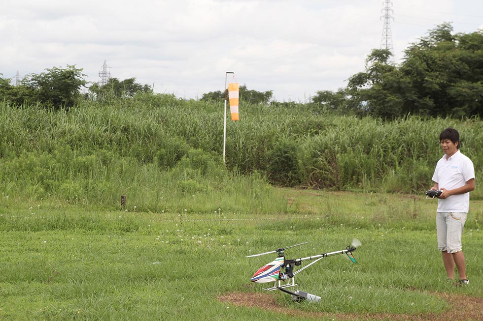 当日は雨上がりの大変湿度の高いコンディションでしたが、腕に覚えのある3Dフライヤーが次々とフライトインしたり、ゲストフライヤーであるFutaba土橋選手が華麗なフライトを披露。タイムラリーでは誰もが真剣な表情で挑み、懐かしのF3C競技会では、挑戦しやすい内容に設定した静演技での競技ということで、多くのフライヤーが挑戦してくれました。