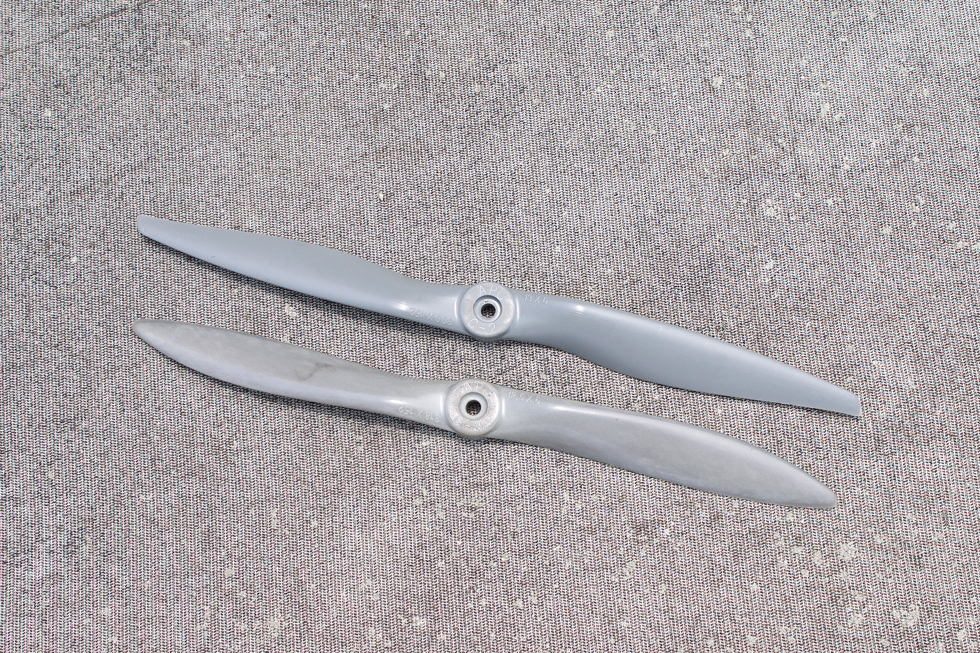スケール機だけにやや大きなサイズのプロペラでゆっくりと飛ばすのもなかなか味があります。好みによってはこちらのサイズでもいいかもしれません。