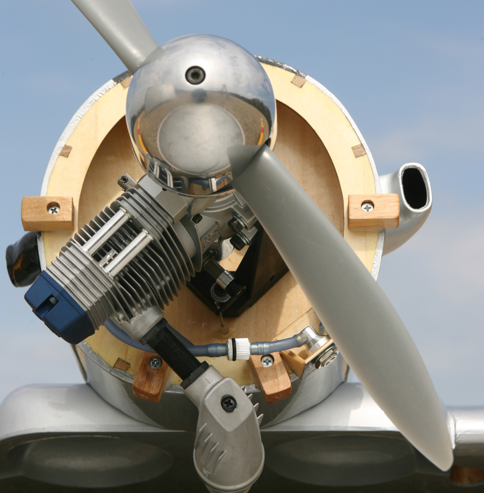 これはスケール機などで起こることが多いオーバーヒートの原因です。実機を模したスケール機は飛行中エンジンそのものに風が当たらず、エンジンを冷やすことができなくなり、結果的にオーバーヒートにつながります。 対策としては、カウルの切欠きをできるだけ大きくしたいところですが、スケール機などでは見た目も重要だと思います。こういった時にオーバーヒートを起こさないようにするには、できるだけ入口よりも出口の面積を増やし、熱を外部に逃がすようにすることが大切です。出口をまったく設けないで、入り口ばかりを大きくしている方も多くみかけますが、カウル内の空気排出効率は出口の大きさと形状で決まりますので、積極的な排出を心掛けてください。